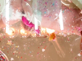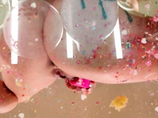Food Play Cake Sitting and Masturbation with Big Tits