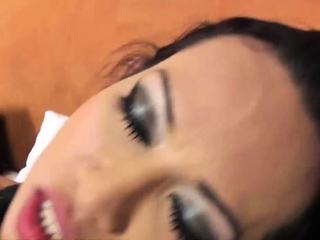 Petite Asian shemale with blue eyes gives her stud a