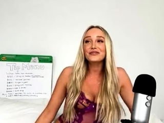 Non stop blonde with big boobs cock jerks off on the bed