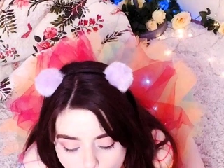 Skinny teen brunette masturbating with toy
