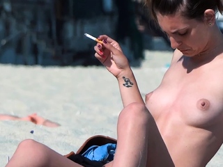 Cute nudist girl secretly filmed around her tent nude