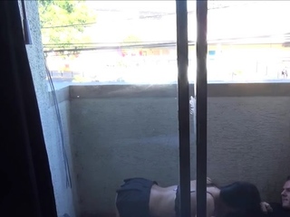 Hot sex on the balcony with a slim Latina