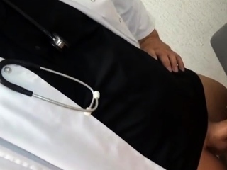 Threesome in the doctor's office with a blonde patient FMM