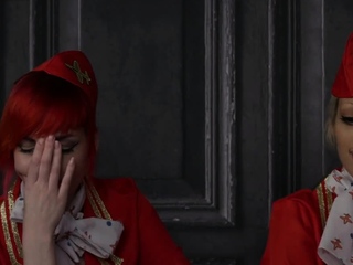 CFNM stewardesses suck in group blowjob