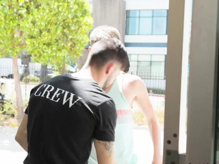 Muscular hairy gay anal fucks twink first time on camera