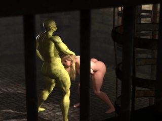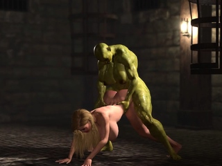 Young busty bitch gets fucked roughly by a green monster
