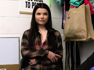 Big tit brunette teen suspect on knees blowing