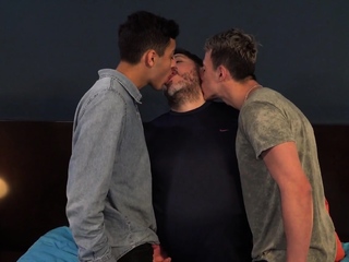 Chubby amateur DILF barebacked in 3some