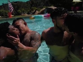Amateur hunks enjoy IR bareback orgy