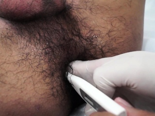 Asian doctor anal toying patient