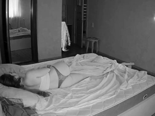 Small titted brunette teen fingering on the bed