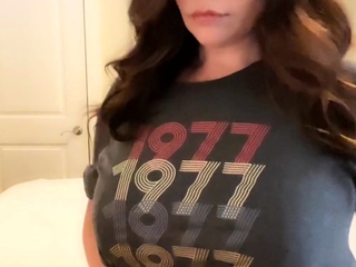 Busty curly brunette with big boobs fucks on couch