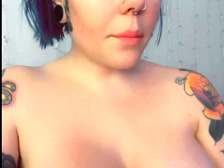 Busty curly brunette with big boobs fucks on couch