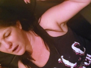 Amateur busty brunette masturbates and does hand job