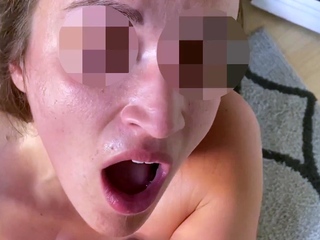 Skinny brunette girlfriend gives blowjob in POV
