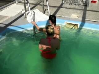 Frea Dee pool lesbians with Licky Lex
