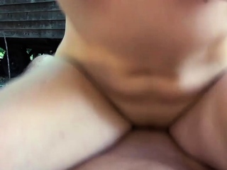 Sweet amateur babe cockriding outdoor