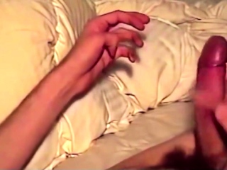Skinny guy jerking huge cock